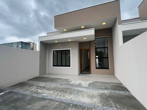 LAZER E QUALIDADE DE VIDA A POUCOS METROS DO MAR!!! Belíssima residência contendo 3 dormitórios sendo 1 suíte, sala e copa em conceito aberto, 1 banheiro social, cozinha, área de serviço, lavabo, edícula com despensa e espaço gourmet com churrasqueira, teto em laje com acabamento em gesso, pisos internos em porcelanato, pintura em textura projetada, imóvel novo, averbado e passível de financiamento, -- Agende já sua visita com um dos nossos corretores e aproveite essa oportunidade, Informações (41)99589-5355.