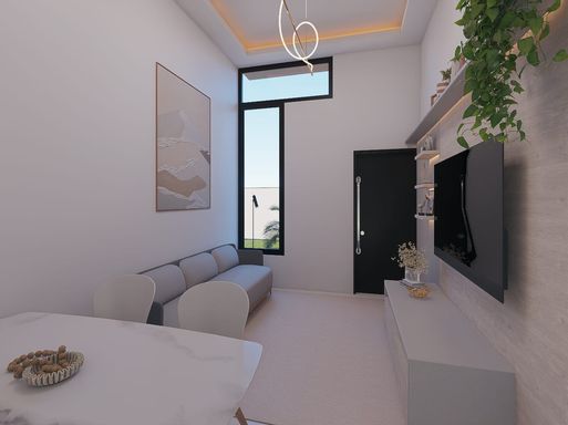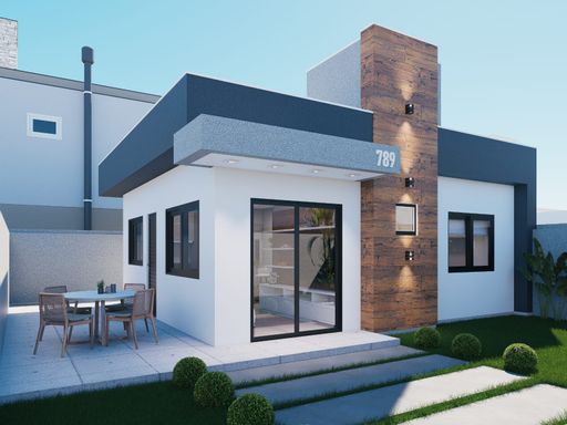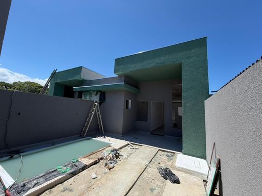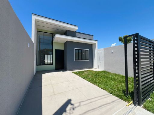 Residência nova de esquina, toda em laje, contendo 2 dormitórios sendo uma suíte, sala com o pé direito alto e cozinha em conceito aberto, 1 banheiro social, área de serviço, espaço gourmet com churrasqueira, vaga para veículo, imóvel averbado, aceita financiamento bancário;