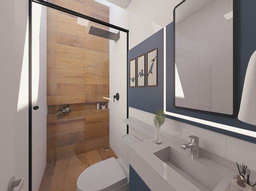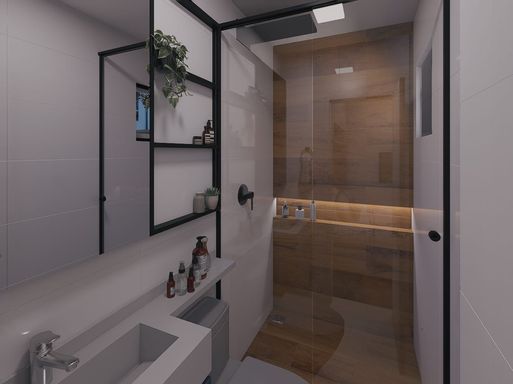 - Os banheiros contam com pias embutidas em granito, nichos práticos e louças de qualidade;