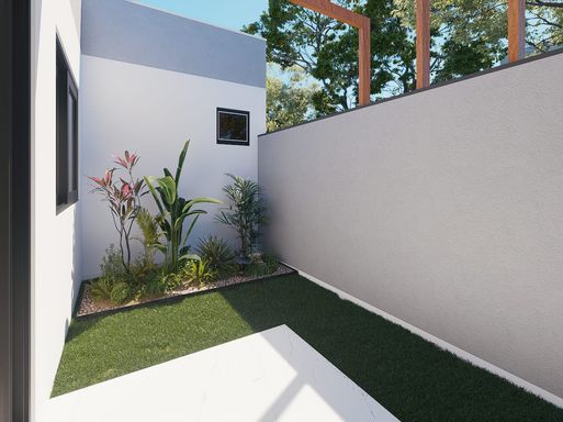 - Espaço destinado ao jardim com gramado na frente e aos fundos.