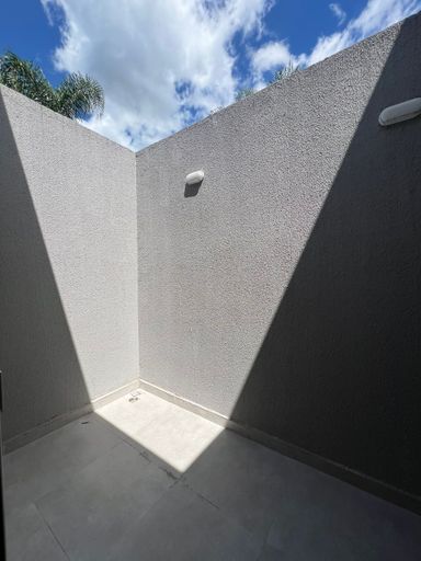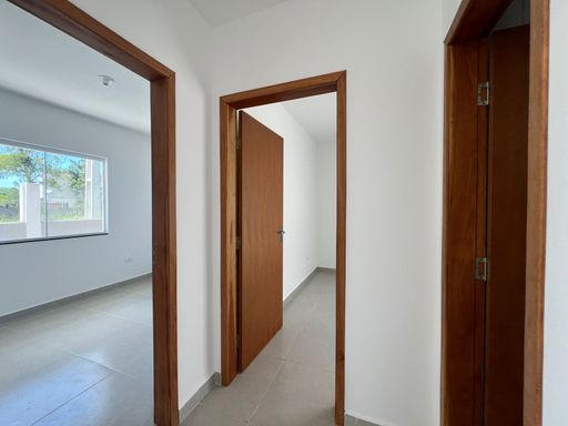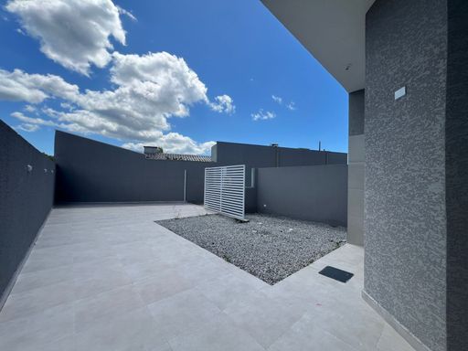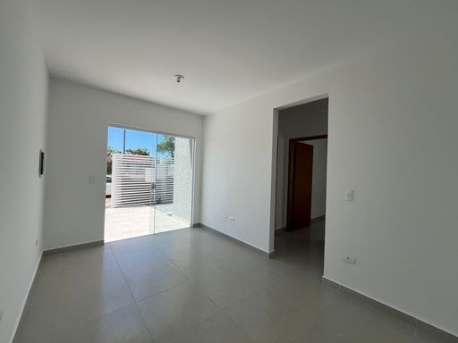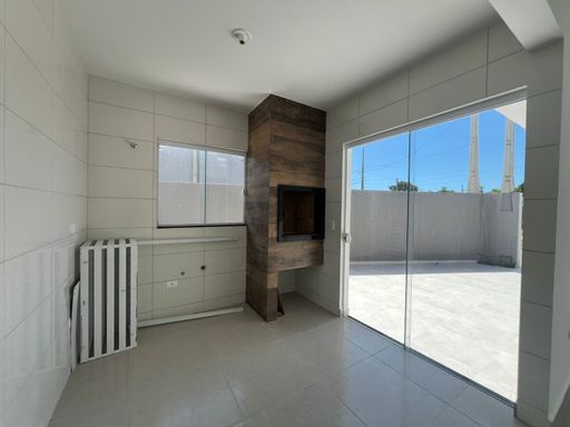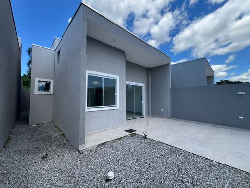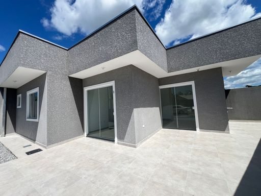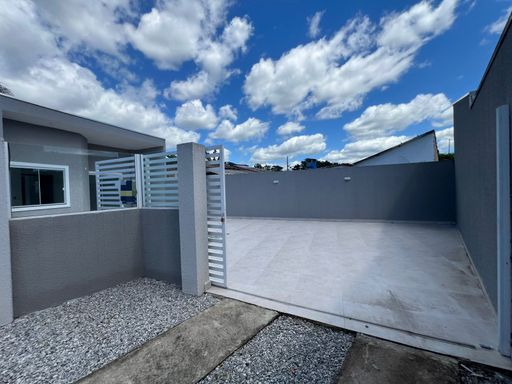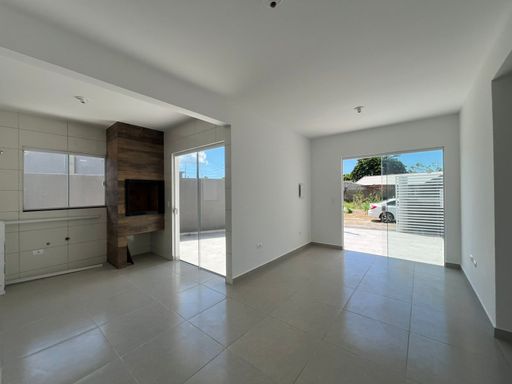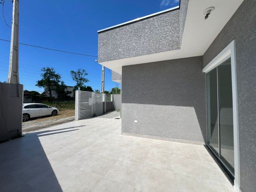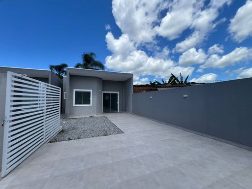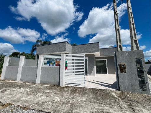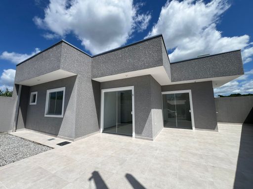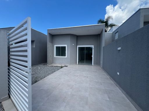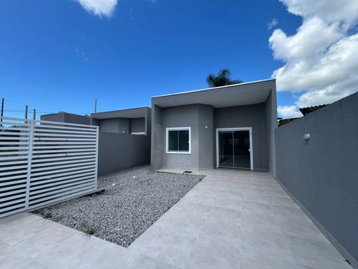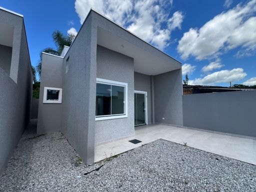 Residência nova, teto em laje, com excelente acabamento, contendo 2 dormitórios sendo uma suíte, sala e cozinha em conceito aberto, 1 bwc social, área de serviço, quintal para piscina, pisos internos em porcelanato, vidros temperados, pintura em textura, portões em alumínio;