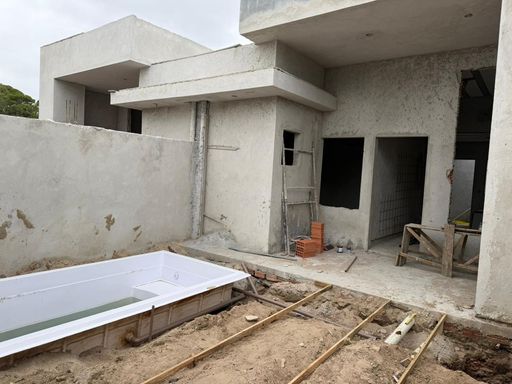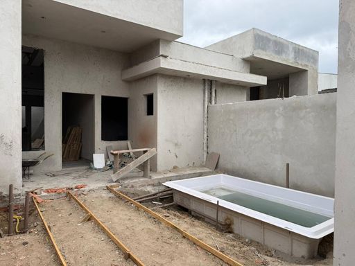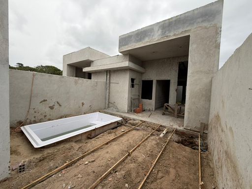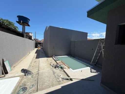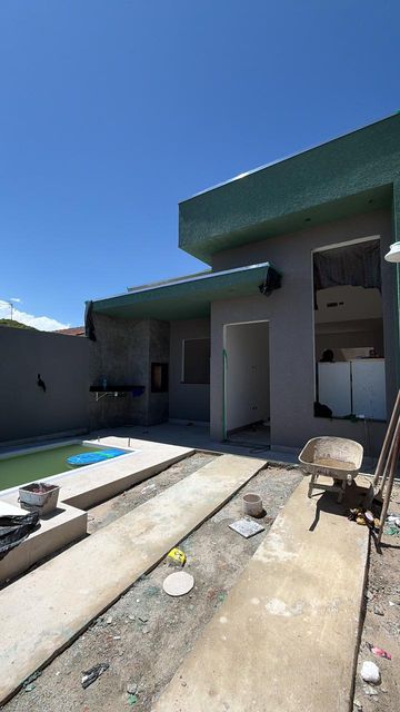 🔹Residência com excelente acabamento, arquitetura moderna e exclusiva, toda em laje, contendo 02 dormitórios sendo 01 suíte, sala e cozinha em conceito aberto, 1 bwc social, espaço gourmet com churrasqueira e piscina, estacionamento para veículos; Imóvel averbado, em ótima localização, aceita financiamento bancário.