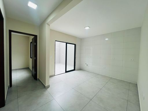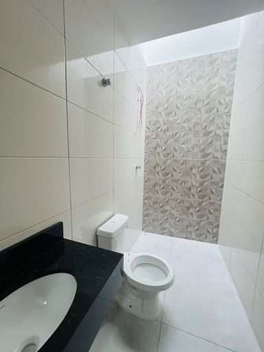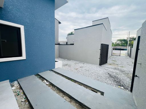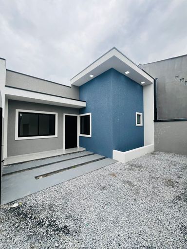 🔹Residência com excelente acabamento, arquitetura moderna e exclusiva, toda em laje, contendo 02 dormitórios sendo 01 suíte, sala e cozinha em conceito aberto, 1 bwc social, área de serviço, estacionamento para veículos; Imóvel averbado, aceita financiamento bancário.