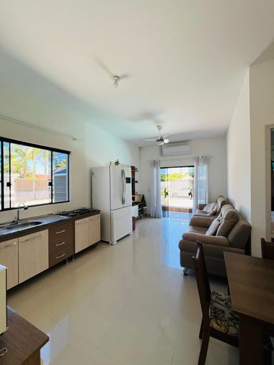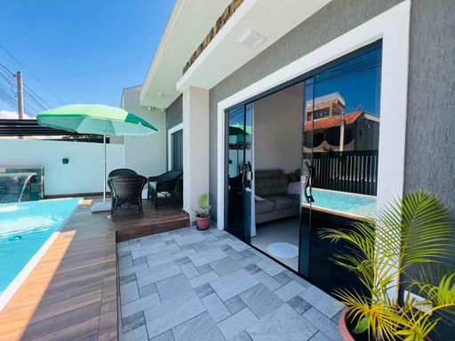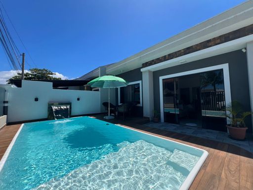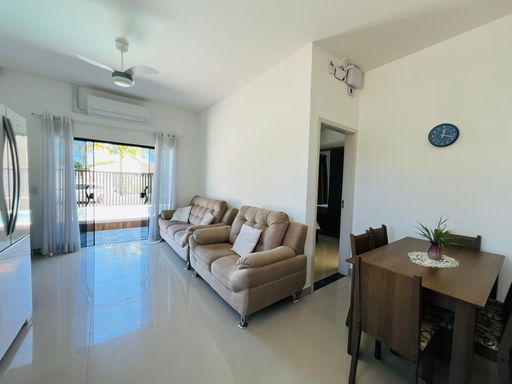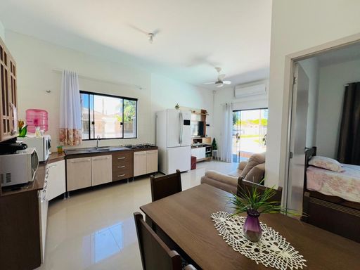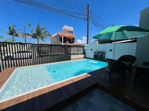 🏡Residência mobiliada de esquina, toda em laje, contendo 02 dormitórios sendo 01 suíte, sala e cozinha em conceito aberto, 1 bwc social, espaço gourmet com churrasqueira, área de lazer com piscina, estacionamento para veículos. Imóvel averbado, em ótima localização,