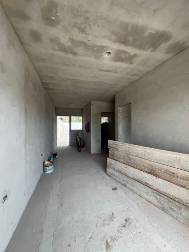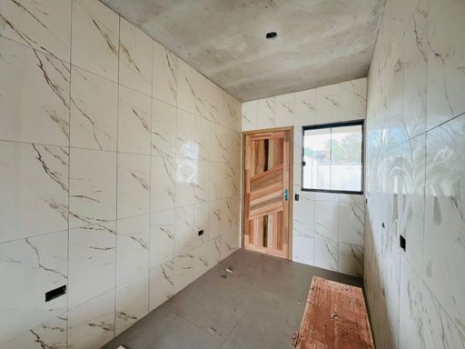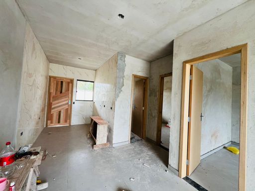 Residência com excelente acabamento, toda em laje, contendo 2 dormitórios, sala e cozinha em conceito aberto, 1 bwc social, quintal nos fundos para edícula ou piscina, Porcelanato nos pisos internos, Janelas e portas de vidros temperados, Pintura em textura projetada,
