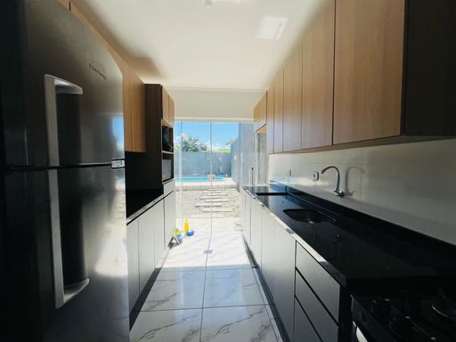 Residência mobiliada, teto em laje, contendo 3 dormitórios sendo 1 suíte, sala, copa e cozinha em conceito aberto, 1 bwc social, jardim de inverno, espaço gourmet quintal com piscina;