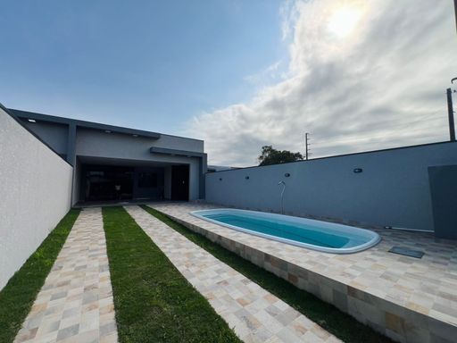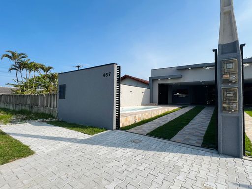 ✨ Residência com excelente acabamento, arquitetura moderna e exclusiva, teto em laje, contendo 03 dormitórios sendo 01 suíte, sala e cozinha em conceito aberto, 1 bwc social, espaço gourmet com churrasqueira, lavabo e piscina, estacionamento para veículos. Imóvel averbado, em ótima localização, a poucos metros da Praia.