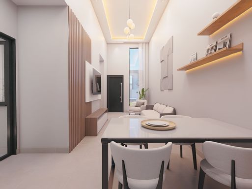 ✨Residência nova, em alvenaria, toda em laje, contendo 3 dormitórios sendo 1 suíte, ampla sala e cozinha em conceito aberto com pé direito alto, 1 bwc social, Piscina, espaço gourmet com churrasqueira e lavabo, quintal nos fundos para edícula;