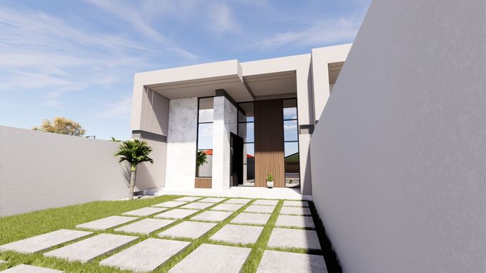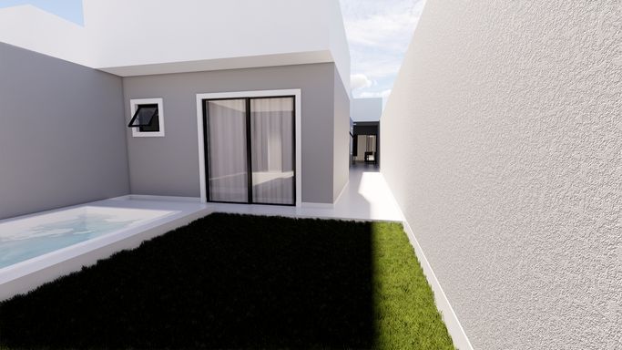 Residência com excelente acabamento, toda em laje, contendo 3 dormitórios sendo 1 suíte, ampla sala com pé direito alto, sala de jantar e cozinha em conceito aberto, 1 bwc social, espaço gourmet com churrasqueira e banheiro social, amplo quintal nos fundos com piscina, pisos e revestimentos de primeira linha, Janelas e portas de vidros temperados, Pintura em textura projetada, Imóvel averbado, aceita financiamento;