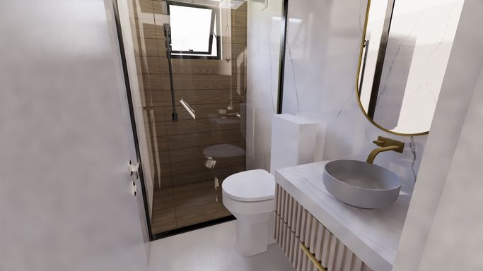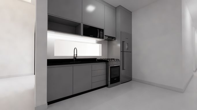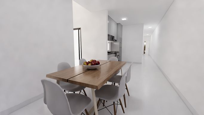 - Sala de estar/ jantar e cozinha em conceito aberto;