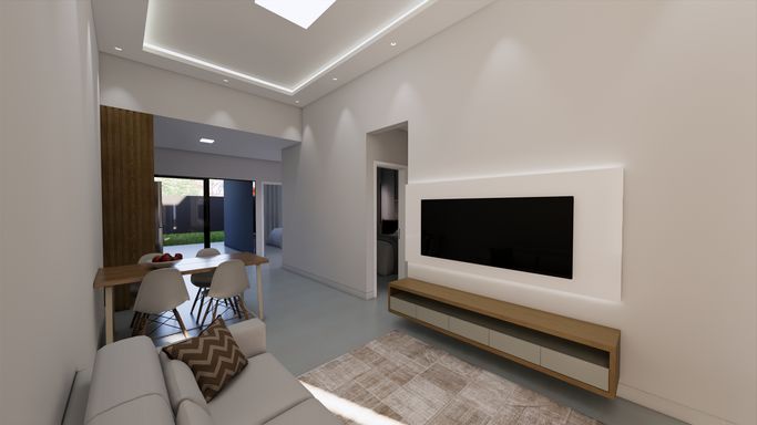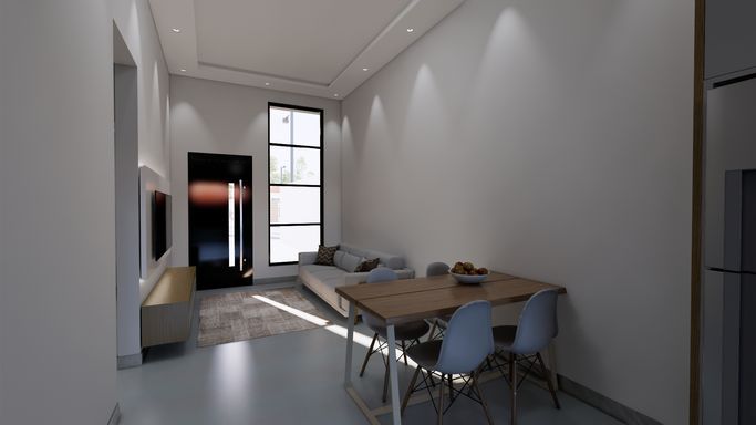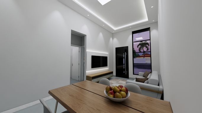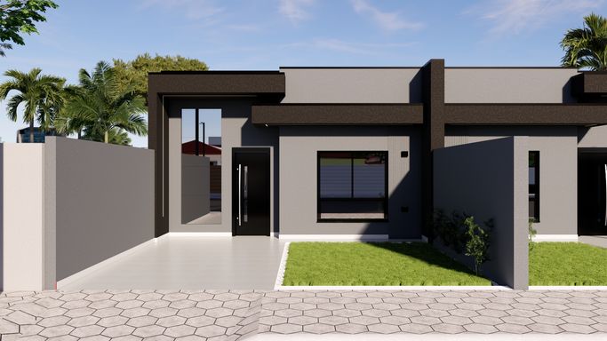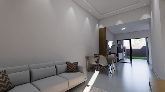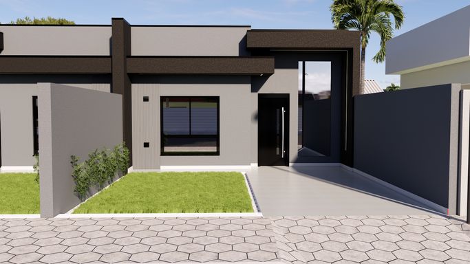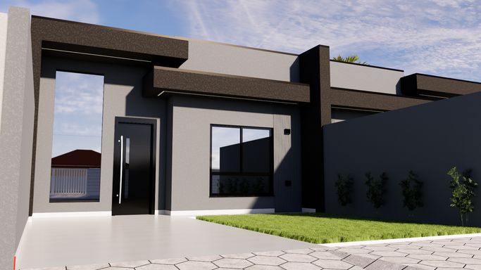 🔹Residência com excelente acabamento, arquitetura moderna e exclusiva, toda em laje, contendo 03 confortáveis dormitórios sendo 01 suíte, sala e cozinha em conceito aberto, 1 bwc social, espaço gourmet com churrasqueira e amplo quintal para edícula ou instalação de piscina, estacionamento para veículos, Imóvel averbado, em região predominante de moradores e comércios.