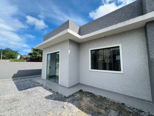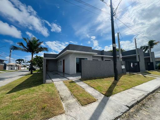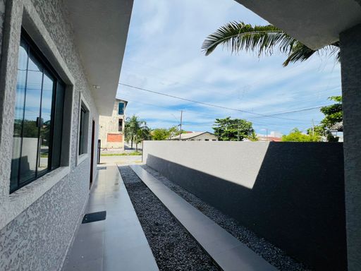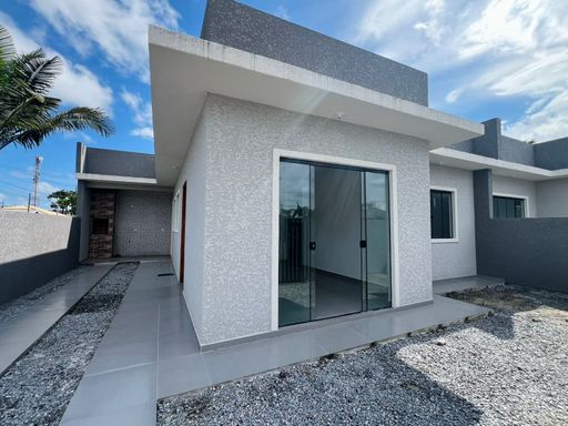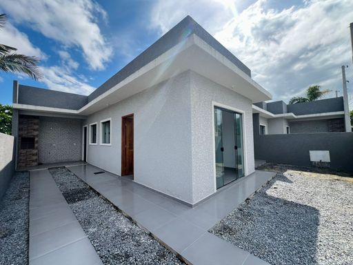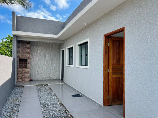 Residência nova de esquina, toda em laje, contendo 3 dormitórios sendo uma suíte, sala e cozinha em conceito aberto, 1 banheiro social, área de serviço, espaço gourmet com churrasqueira, vaga para veículos, imóvel averbado, aceita financiamento bancário, próxima ao mar, região predominante de comércios e moradores;