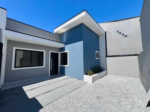 🔹Residência com excelente acabamento, arquitetura moderna e exclusiva, toda em laje, contendo 02 dormitórios sendo 01 suíte, sala e cozinha em conceito aberto, 1 bwc social, área de serviço, estacionamento para veículos; Imóvel averbado, aceita financiamento bancário.