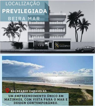 Edifício Salerno de frente para o mar no Balneário Caravelas, onde a sofisticação e o charme encontram-se com a elegância do litoral brasileiro. este empreendimento exclusivo oferece apartamentos de alto padrão com excelentes acabamentos, vistas deslumbrantes e localização privilegiada a beira mar, Desfrute de um estilo de vida incomparável, onde conforto, segurança e a tranquilidade do mar se unem para criar o refúgio perfeito para você e sua família.