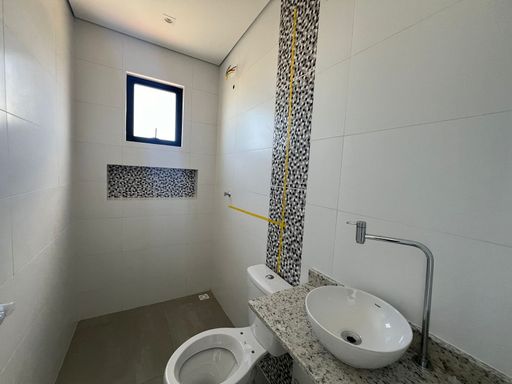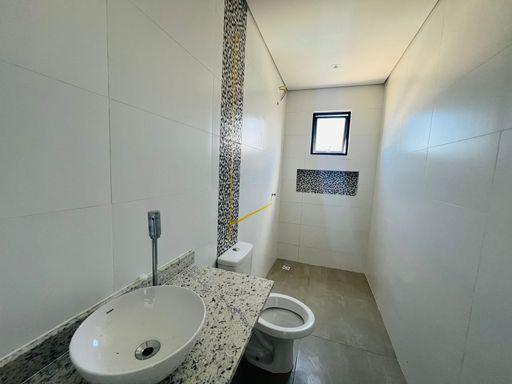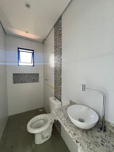 Quartos muito grandes e arejados, banheiro com ventilação natural, teto em dry wall para áreas úmidas e nicho no chuveiro.
