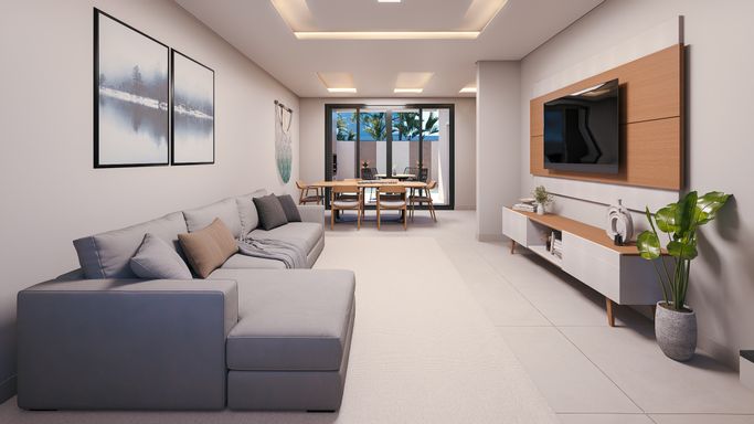• Sala e cozinha em conceito aberto