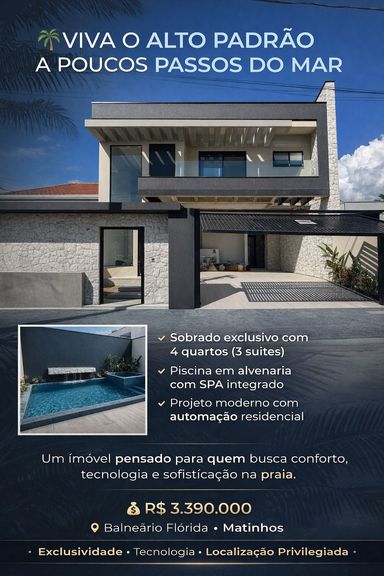 🏖️Você merece viver em um imóvel que une sofisticação, conforto e inovação. Apresentamos este sobrado exclusivo de 268,32m², projetado para quem busca qualidade de vida e modernidade na praia.