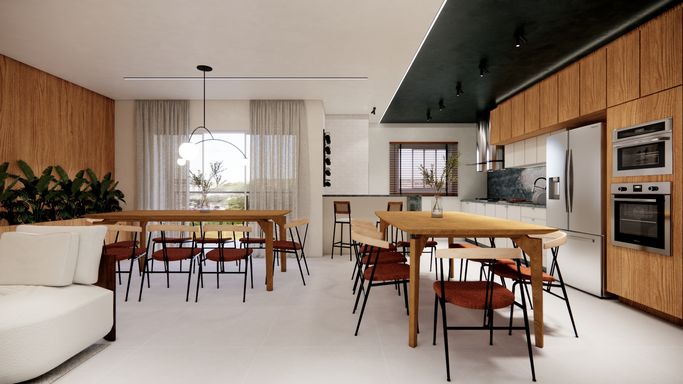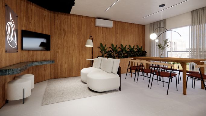 Piscina e salão de festas com espaço gourmet;