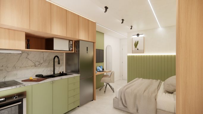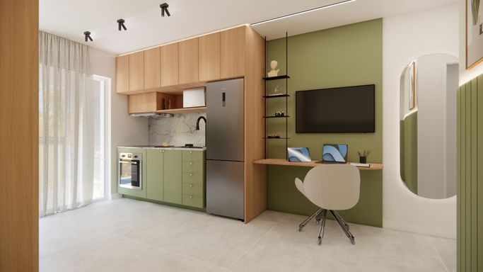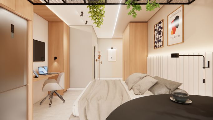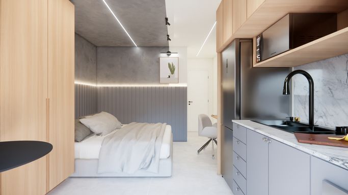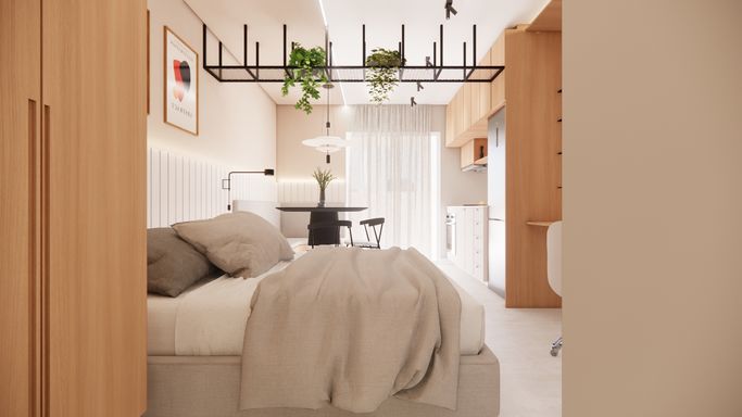 Studios compactos e funcionais;