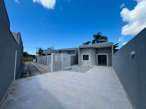 LAZER E QUALIDADE DE VIDA EM UM SÓ LUGAR!!! Residência nova, teto em laje, com excelente acabamento, contendo 2 dormitórios sendo uma suíte, sala e cozinha em conceito aberto, 1 bwc social, área de serviço, quintal para piscina, pisos internos em porcelanato, vidros temperados, pintura em textura, portões em alumínio; *Casa 01 (Frente) R$325.000,00 *Casa 02 (meio) R$315.000,00 *Casa 03 (fundos terreno maior) R$335.000,00 -- Agende já sua visita com um dos nossos corretores e aproveite essa oportunidade, Informações (41)99589-5355